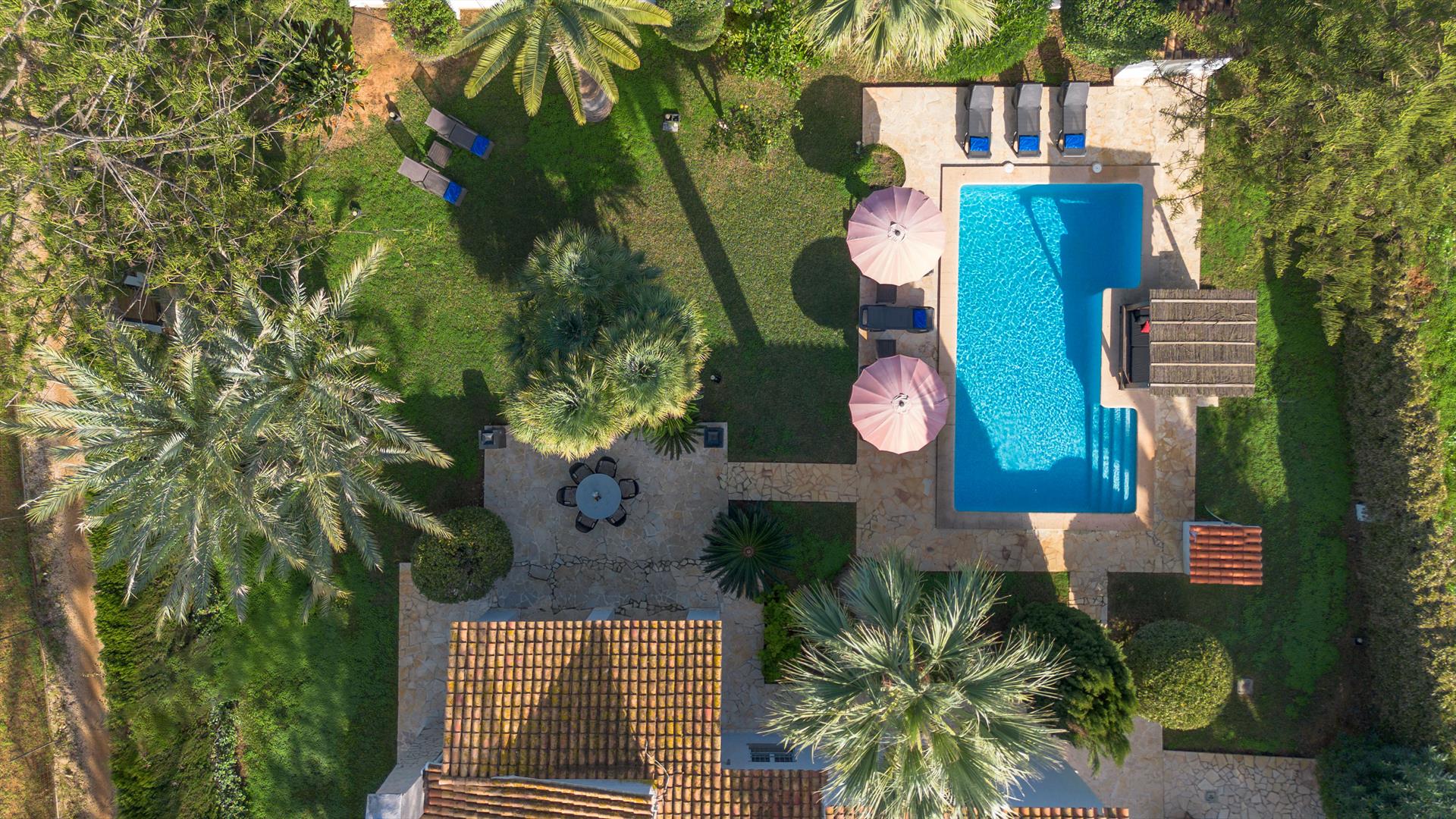 La casa cuenta con 3 dormitorios y 3 baños. El alojamiento ofrece mucha privacidad, un hermoso jardín con césped, gravilla y árboles, y una preciosa piscina. Su comodidad y proximidad a la playa, tiendas, actividades deportivas, vida nocturna, lugares de interés y cultura hacen de esta villa un lugar ideal para pasar sus vacaciones en España con familia, amigos e incluso sus mascotas.