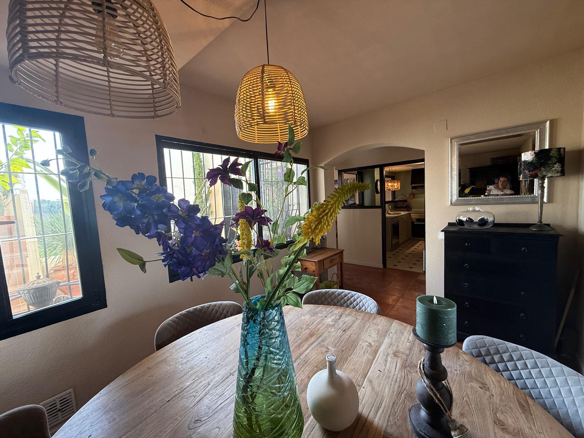 El apartamento cuenta con 2 dormitorios, 2 baños y 1 aseo, distribuidos en 2 niveles. El alojamiento ofrece mucha privacidad, maravillosas vistas al campo de golf y hermosos paisajes del valle. Su comodidad y la proximidad a la playa, tiendas, actividades deportivas y lugares de entretenimiento hacen de este un excelente apartamento para pasar sus vacaciones en España con familia o amigos.