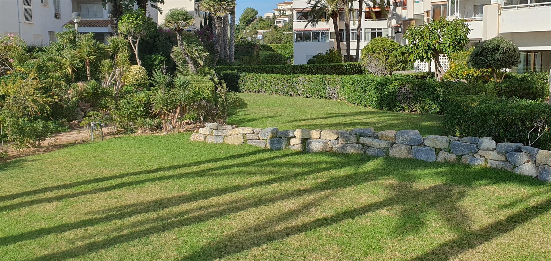 El apartamento cuenta con 2 dormitorios, 2 baños y 1 aseo de invitados. El alojamiento ofrece privacidad, un hermoso jardín con césped y árboles, un jardín comunitario con césped y árboles, y vistas preciosas al mar, a la piscina y al jardín.