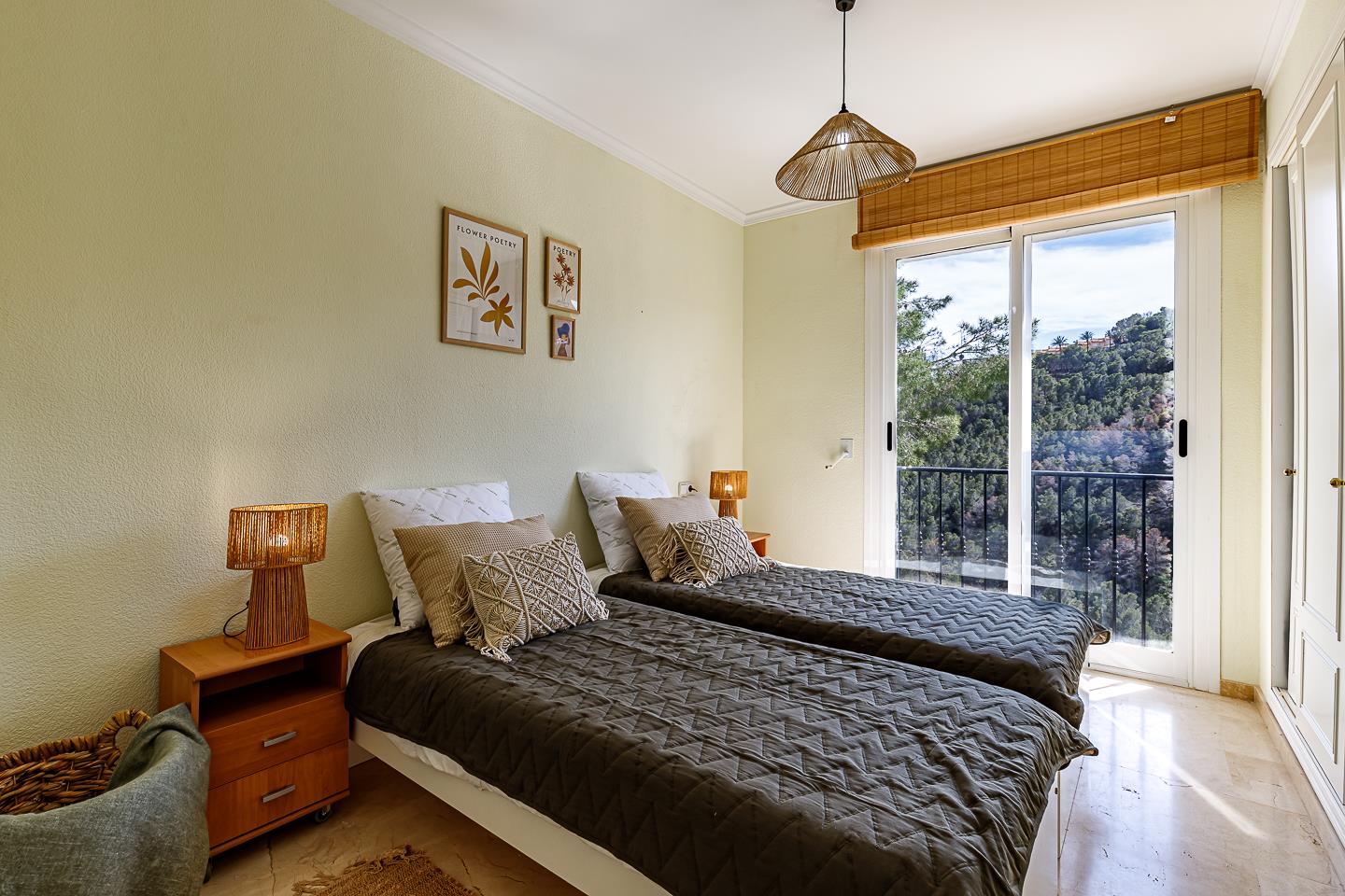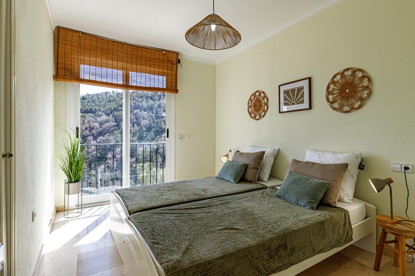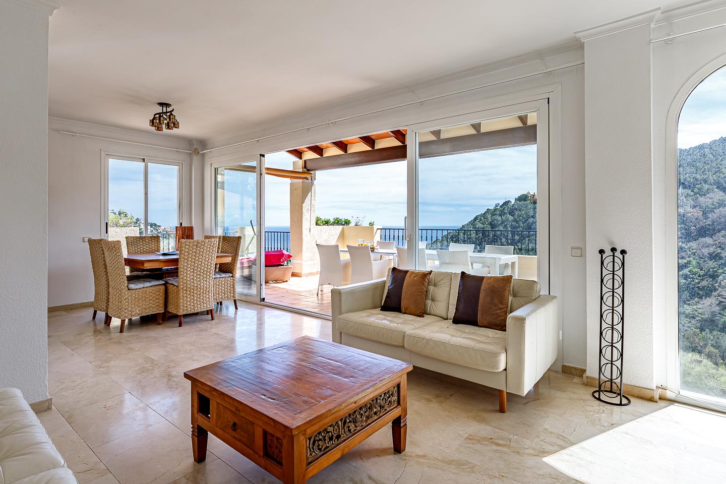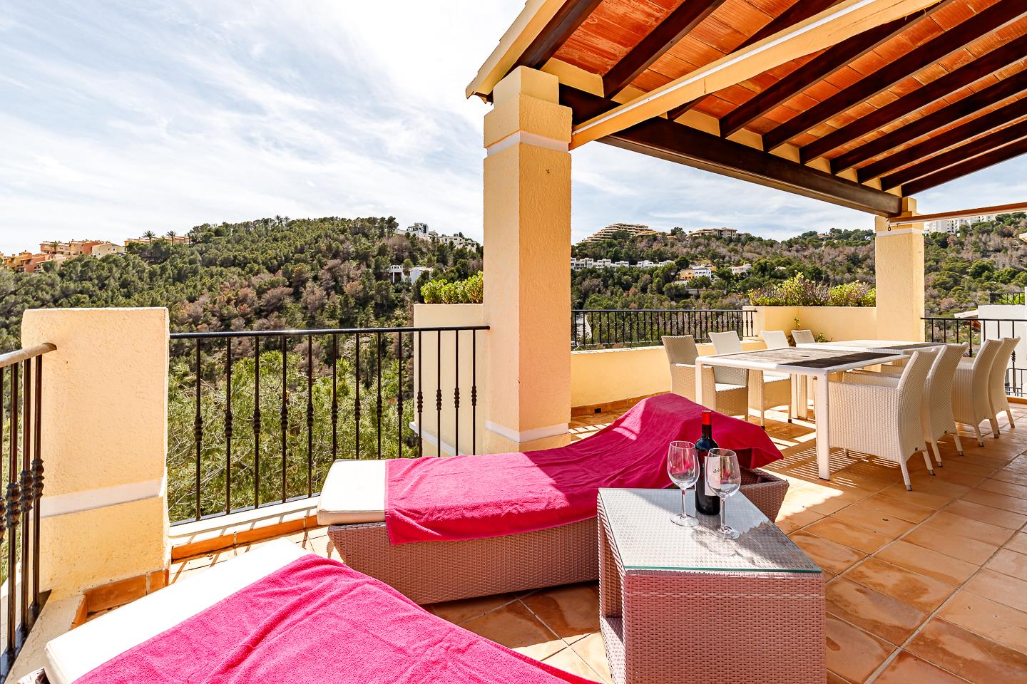 La casa de vacaciones cuenta con 3 dormitorios, 2 baños y 1 aseo de invitados, distribuidos en 2 niveles. El alojamiento ofrece un jardín con árboles, una hermosa piscina y impresionantes vistas de la bahía, el mar y el valle. Su comodidad y la proximidad a la playa y actividades deportivas hacen de este un hogar vacacional encantador para disfrutar de sus vacaciones en España con familia o amigos.