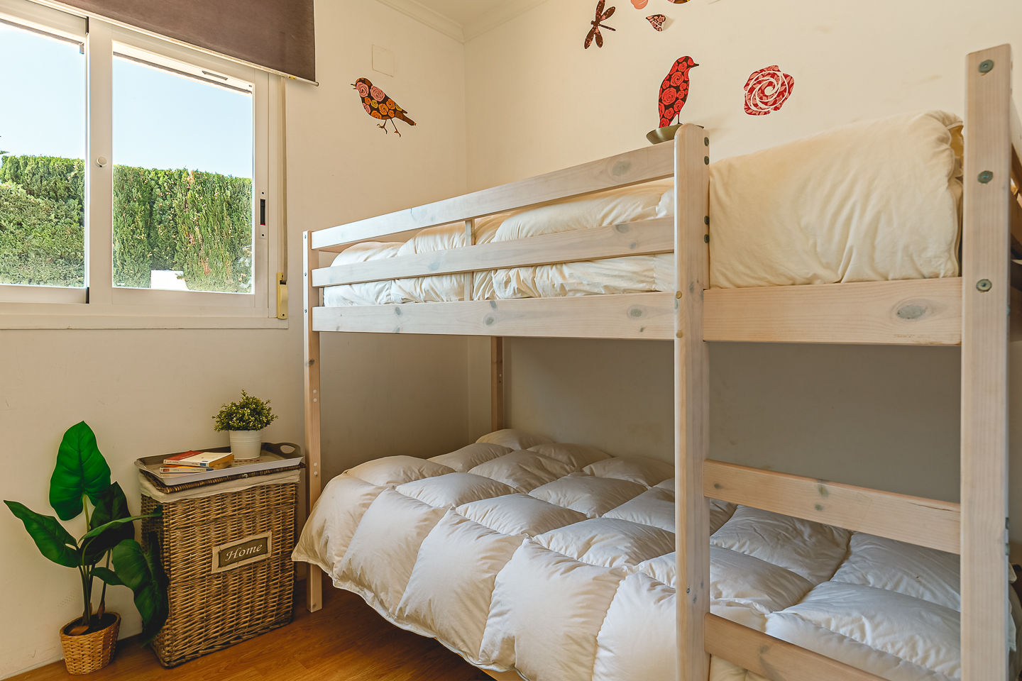 La casa cuenta con 4 dormitorios y 3 baños, distribuidos en 2 niveles. El alojamiento ofrece privacidad, un jardín con grava y árboles, y una hermosa piscina. Su comodidad y la proximidad a la playa, lugares de compras y actividades deportivas hacen de esta una excelente casa de vacaciones para pasar sus días en España con familia o amigos.