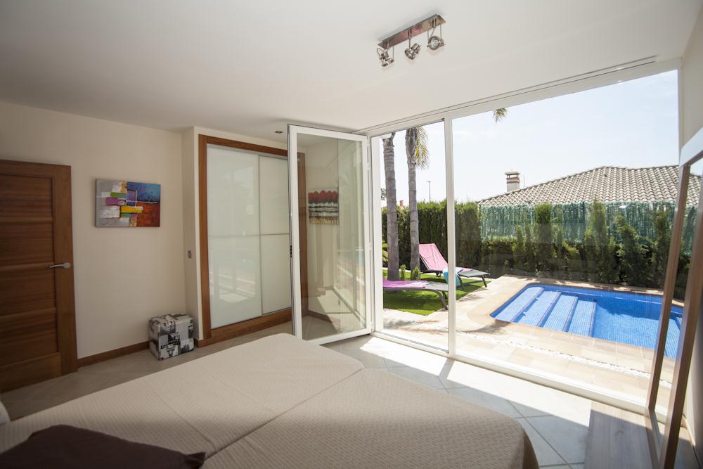 La villa cuenta con 4 dormitorios y 3 baños, distribuidos en 2 niveles. El alojamiento ofrece privacidad, un jardín con árboles y una hermosa piscina. Su confort y la proximidad a la playa, áreas comerciales, actividades deportivas y vida nocturna hacen de esta una excelente villa para disfrutar de sus vacaciones en España con familiares o amigos.