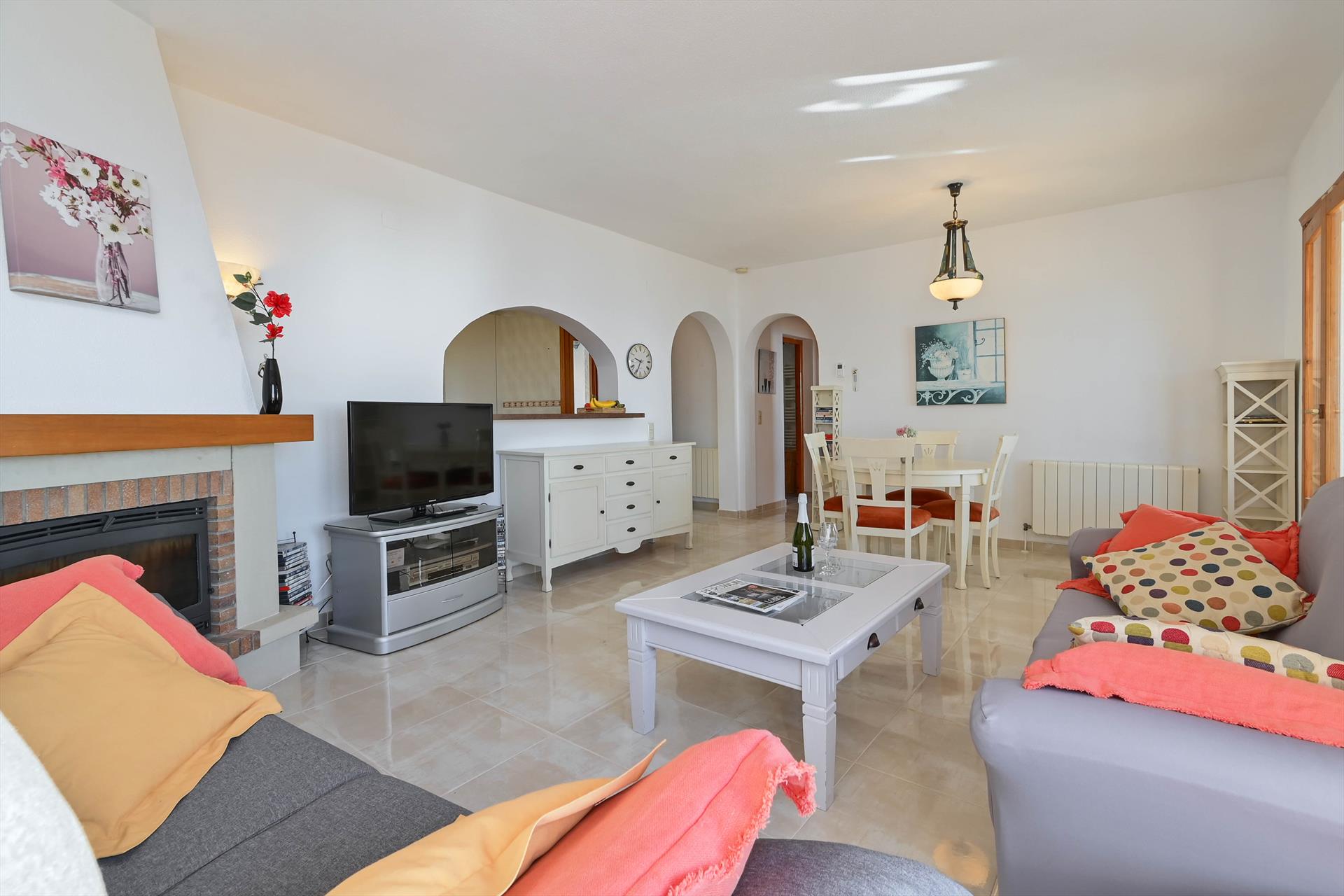 La villa cuenta con 3 dormitorios y 3 baños, distribuidos en 2 niveles. El alojamiento ofrece un jardín con grava y árboles y maravillosas vistas al mar. La cercanía a la playa, actividades deportivas, lugares de interés y cultura hacen de esta villa un lugar ideal para pasar sus vacaciones en España con familia o amigos.