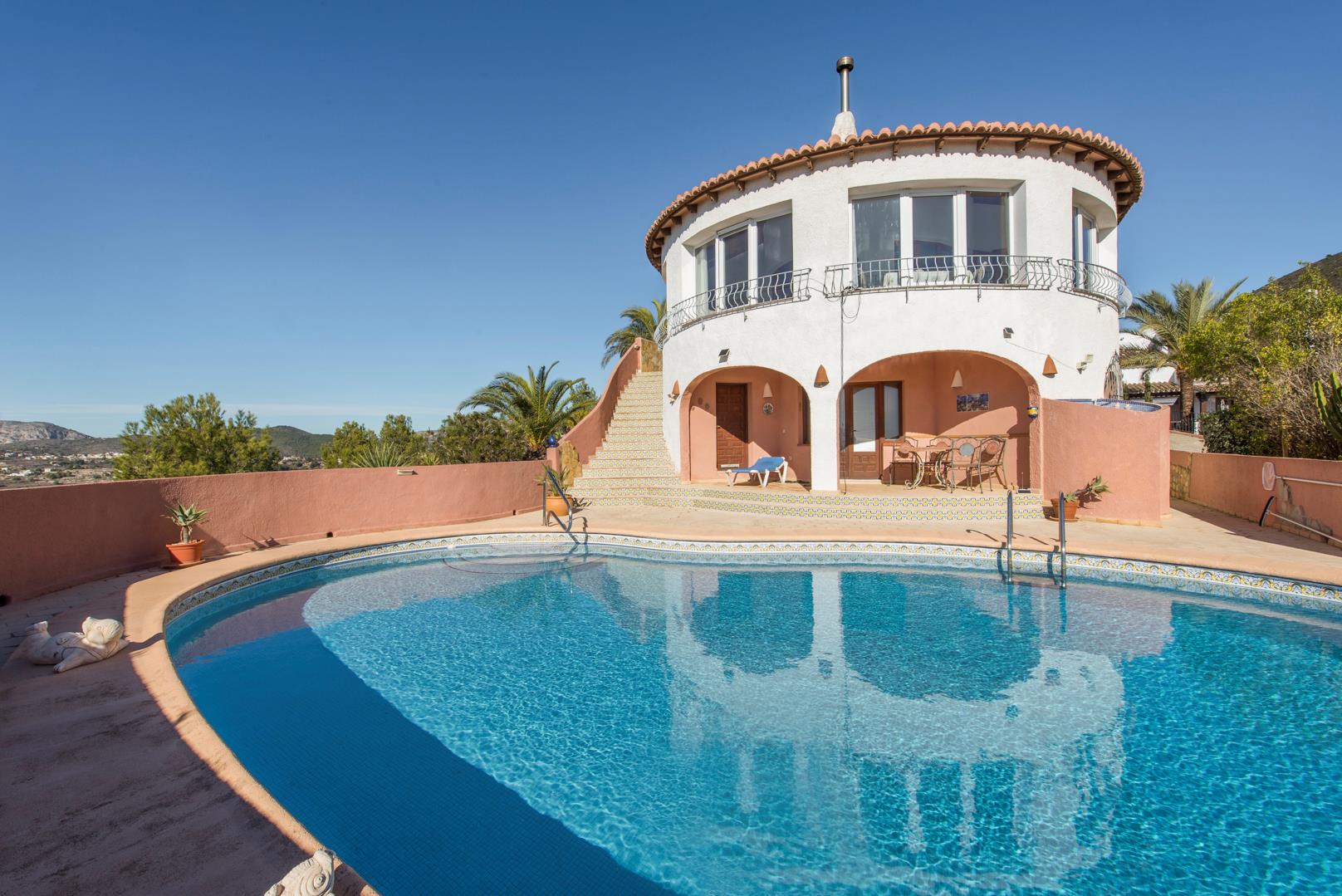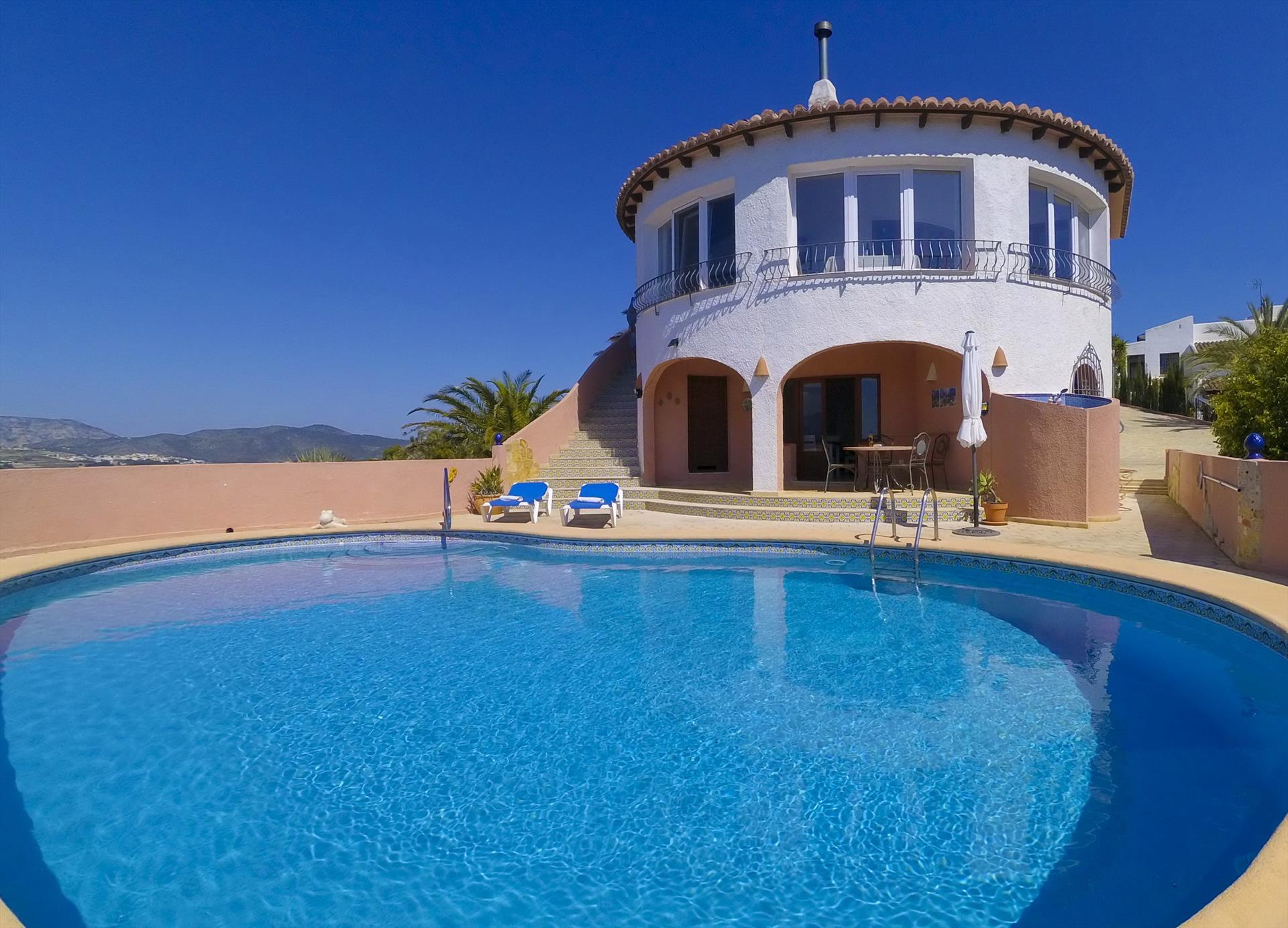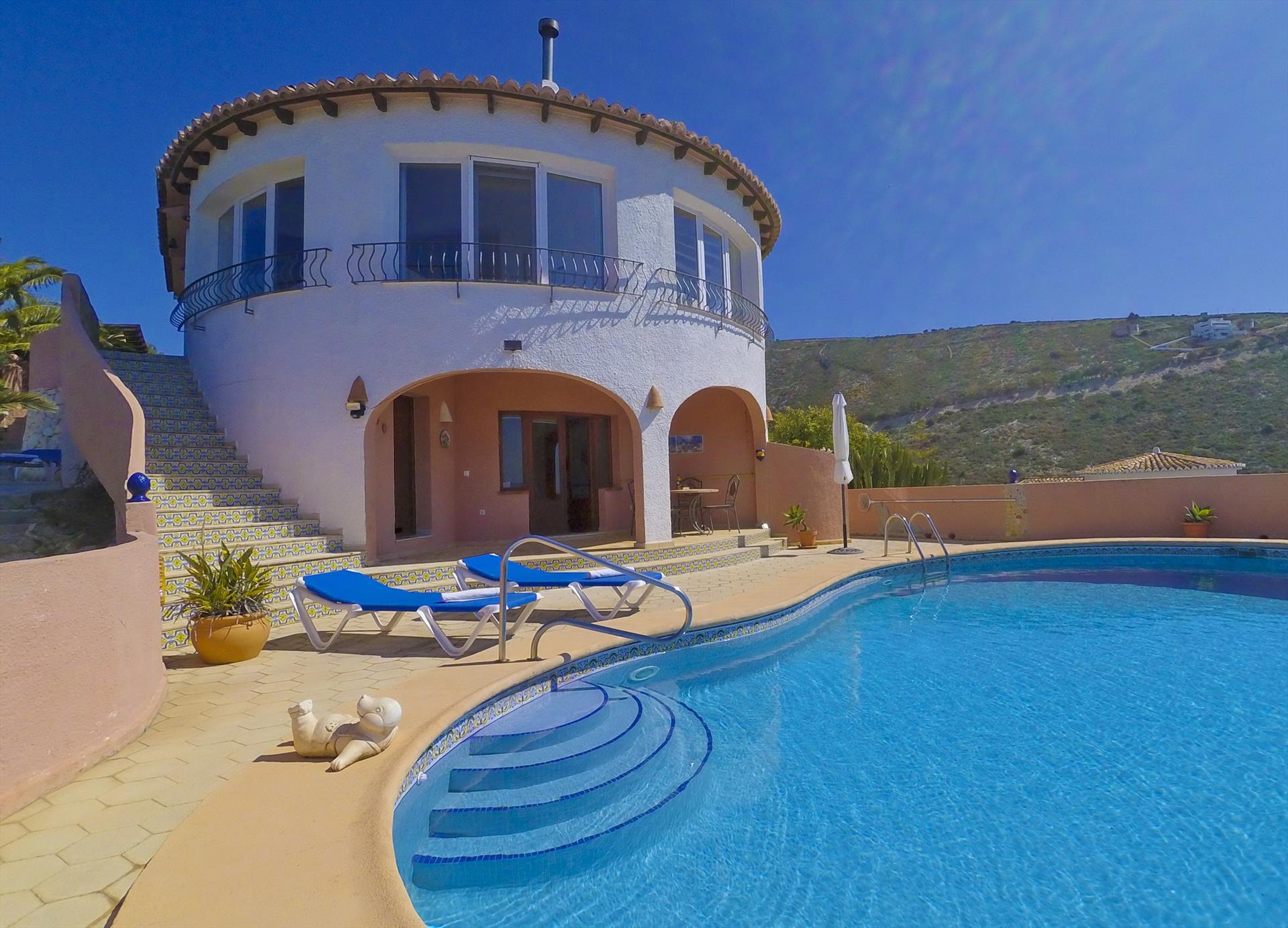 Maravillosa y cómoda villa en Benitachell, Costa Blanca, España, con piscina privada para 6 personas. La casa está situada en una zona residencial montañosa cerca de la playa y a 10 km de Moraira.