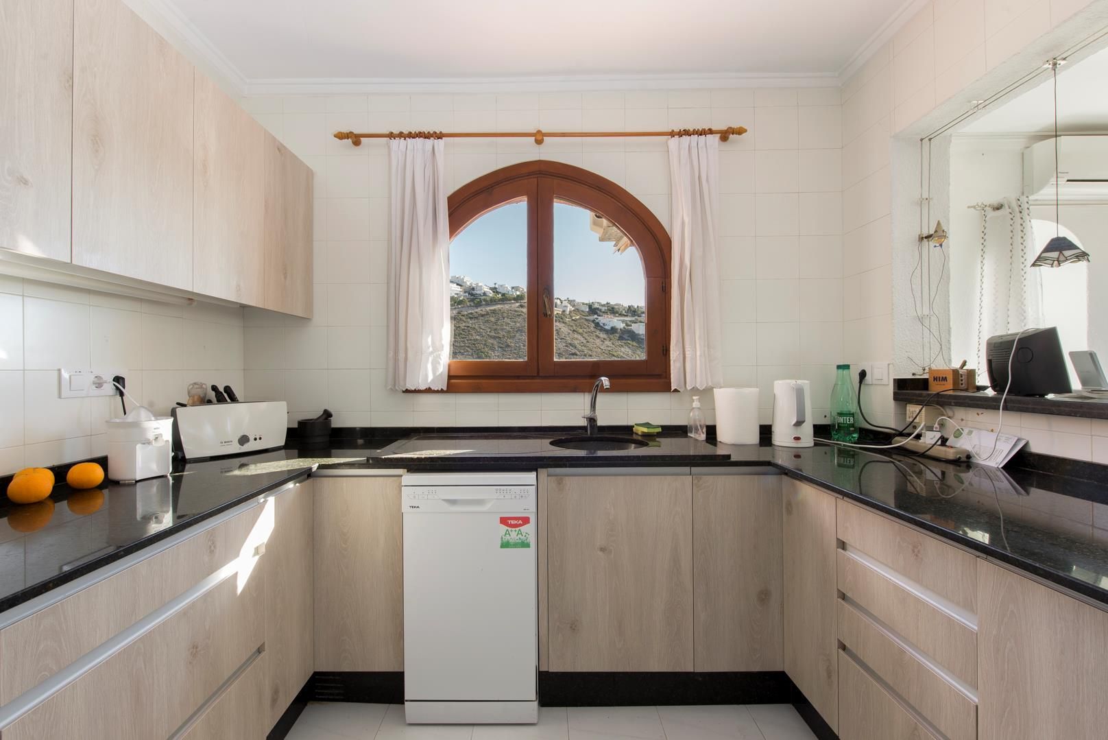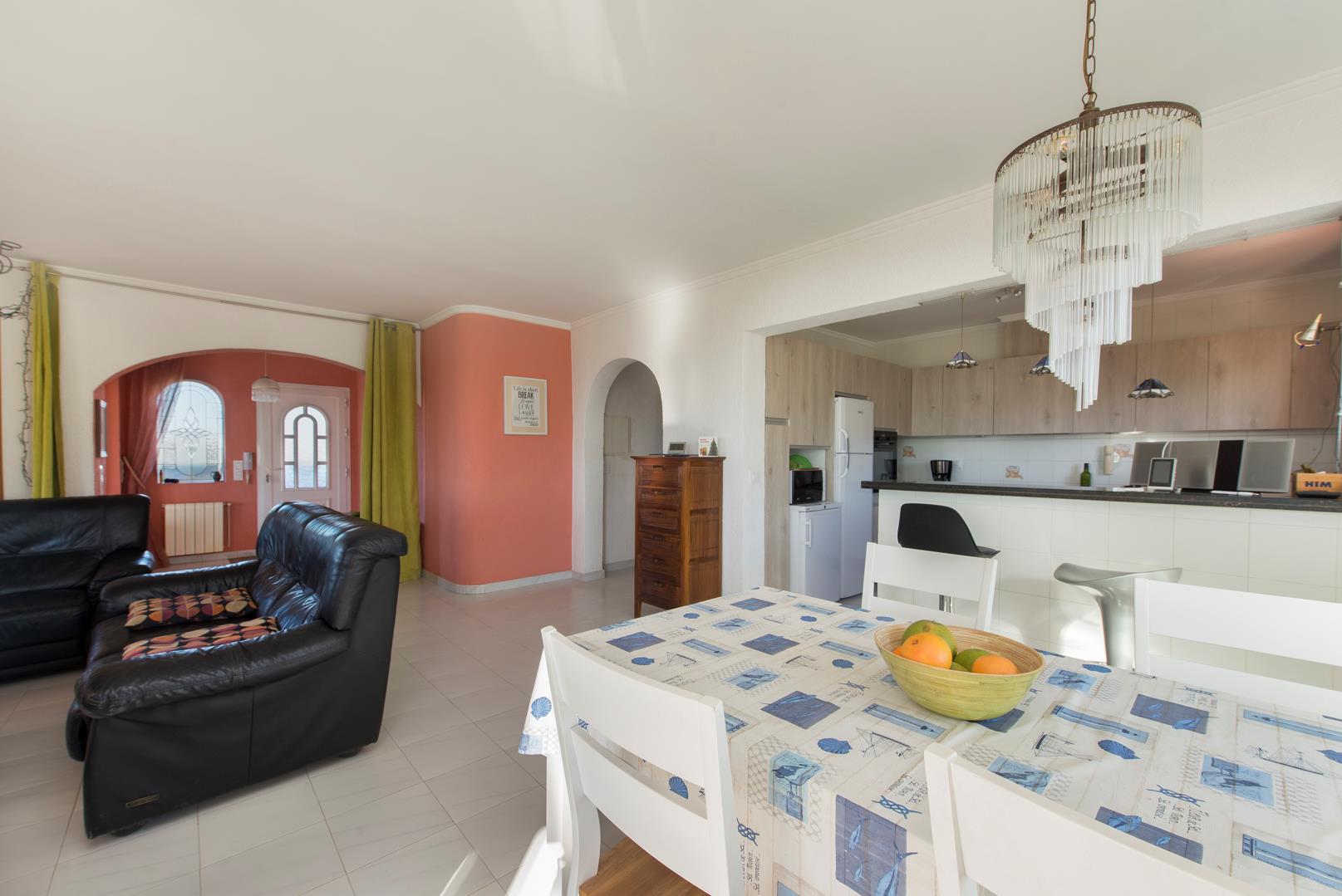 La casa cuenta con 3 dormitorios y 2 baños. El alojamiento ofrece mucha privacidad, un jardín con árboles, una hermosa piscina y vistas maravillosas al mar y a las montañas. Su confort y la proximidad a actividades deportivas hacen de esta villa un lugar ideal para pasar sus vacaciones en España con familia o amigos, e incluso con sus mascotas.