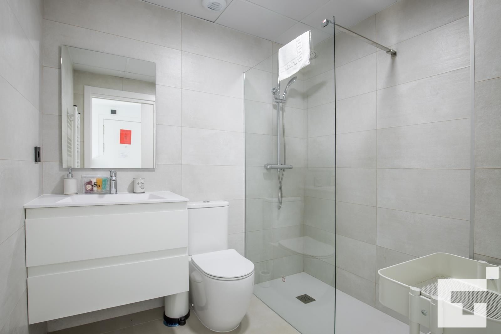 • baño con lavabo individual, ducha y aseo