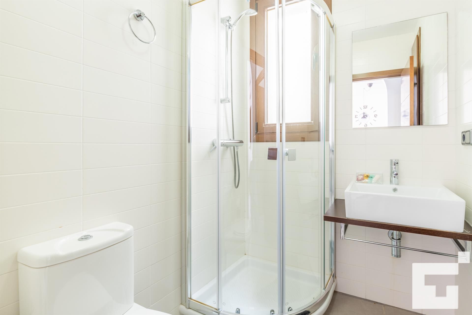 • baño con lavabo individual, ducha y aseo