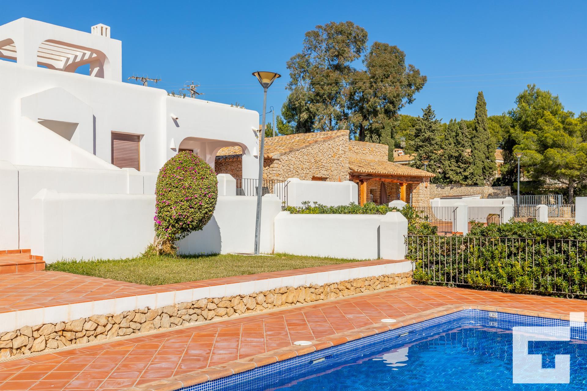 La casa cuenta con 2 dormitorios y 2 baños. El alojamiento ofrece un maravilloso jardín con césped y un jardín comunitario también con césped. Su confort y la cercanía a la playa hacen de esta villa un lugar ideal para pasar sus vacaciones en España con familia o amigos.