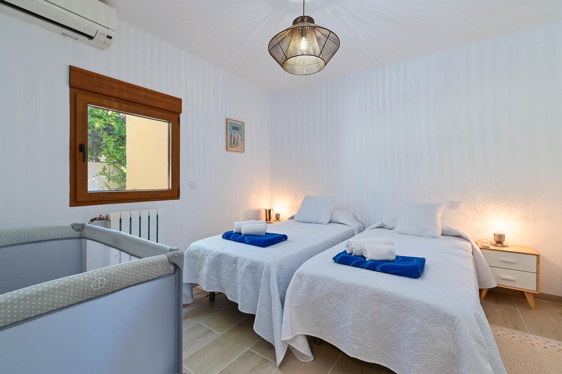 La casa tiene 3 dormitorios, 2 baños y 1 aseo de cortesía. El alojamiento ofrece privacidad, un jardín con grava y árboles, y una hermosa piscina. Su comodidad y la proximidad a la playa, tiendas, actividades deportivas, vida nocturna, lugares de interés y cultura hacen de esta villa un excelente lugar para pasar sus vacaciones en España con familia o amigos.