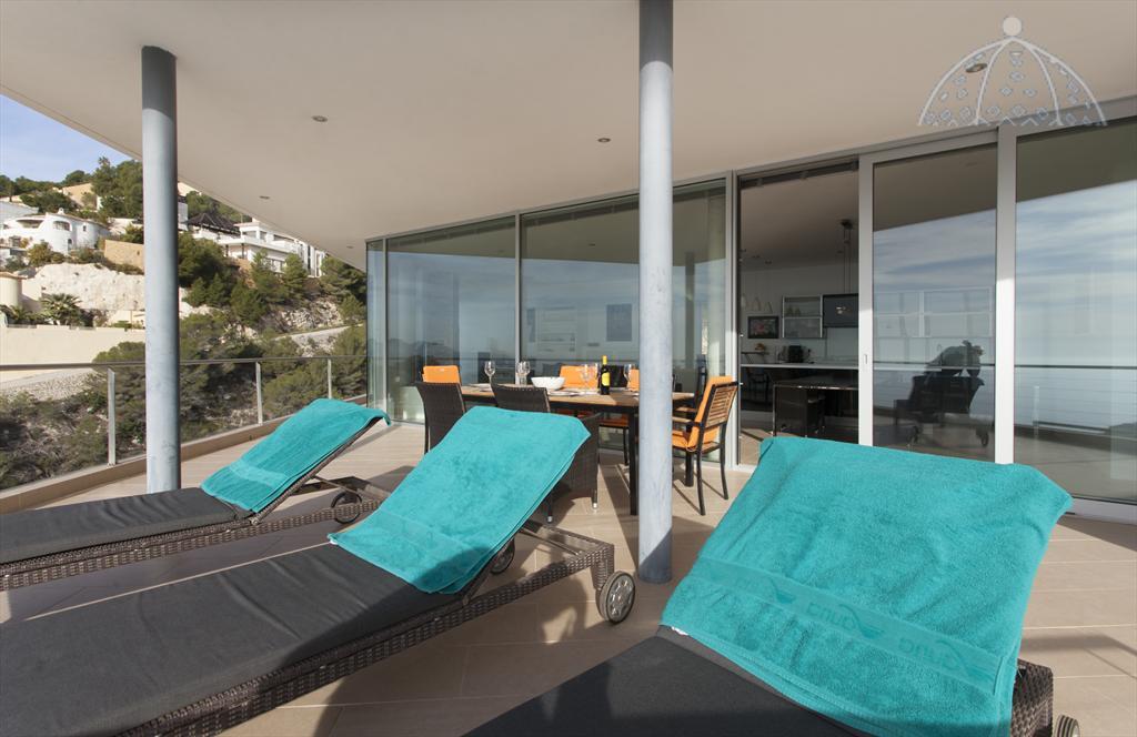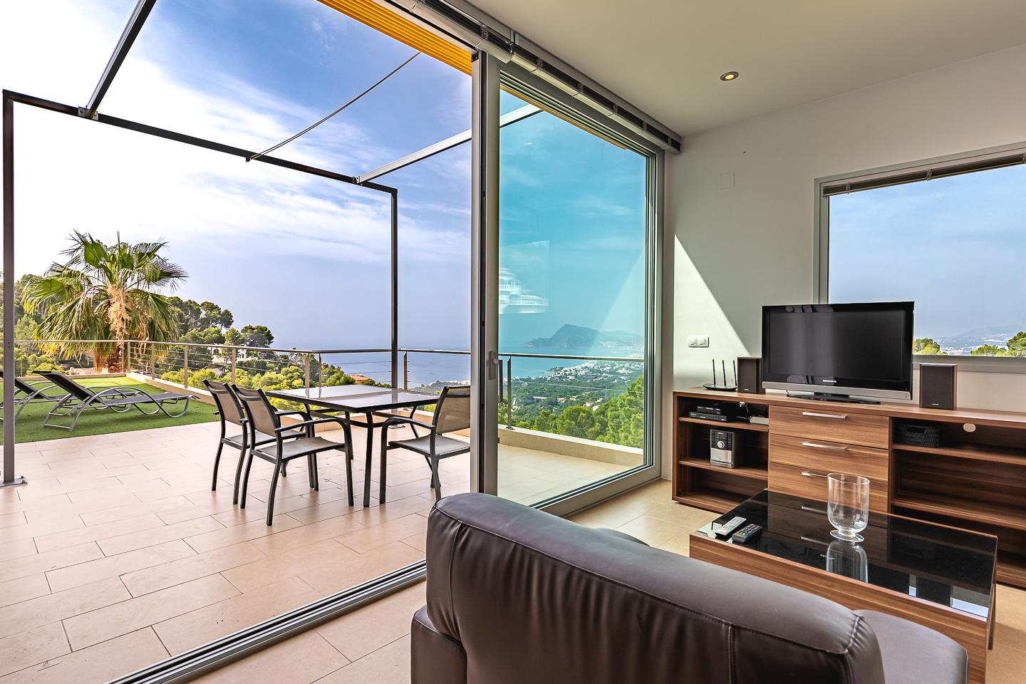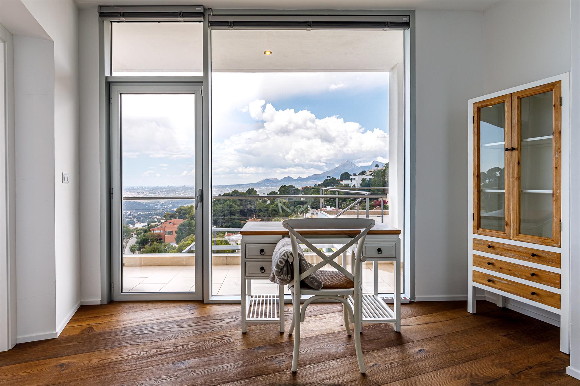 Modernes und luxuriöses Ferienhaus in Altea, Costa Blanca, Spanien mit beheiztem Pool für 8 Personen. Das Haus befindet sich in einer Küsten-, hügeligen und Wohngegend, nur 4 km vom Strand Altea Campomanes entfernt.