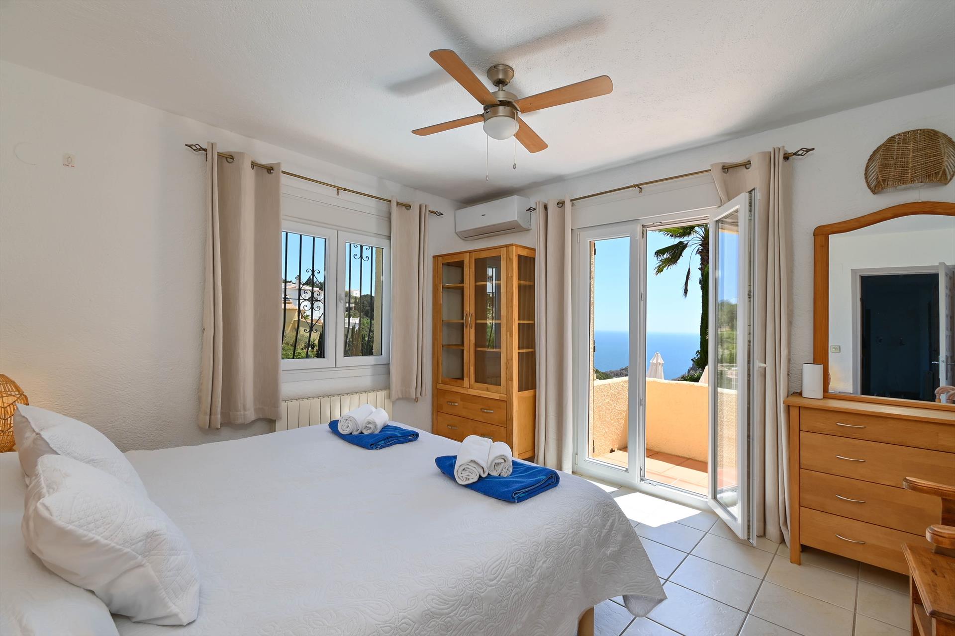 Die Villa verfügt über 3 Schlafzimmer und 2 Badezimmer, verteilt auf 2 Ebenen. Die Unterkunft bietet Privatsphäre, einen Garten mit Kies, einen wunderschönen Pool, herrliche Ausblicke auf das Meer sowie schöne Aussichten auf das Tal und die Berge. Der Komfort und die Nähe zum Strand, zu Sportaktivitäten, Sehenswürdigkeiten und kulturellen Stätten machen diese Villa zu einem idealen Ort, um Ihren Urlaub in Spanien mit Familie oder Freunden zu verbringen.