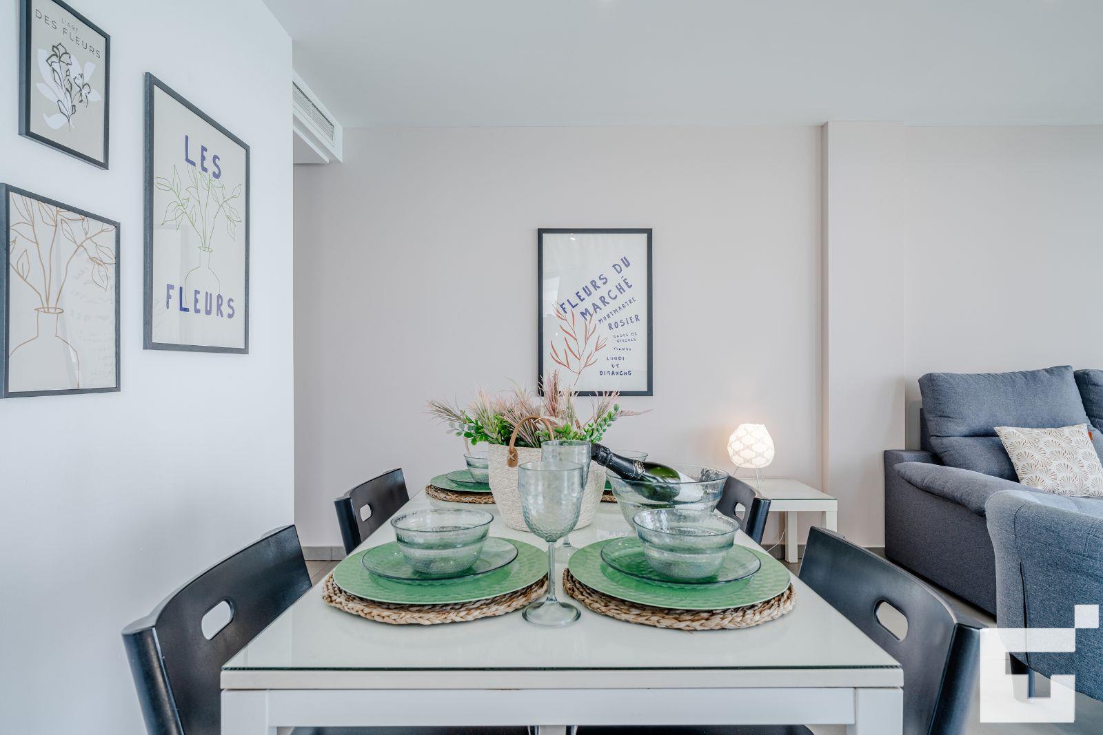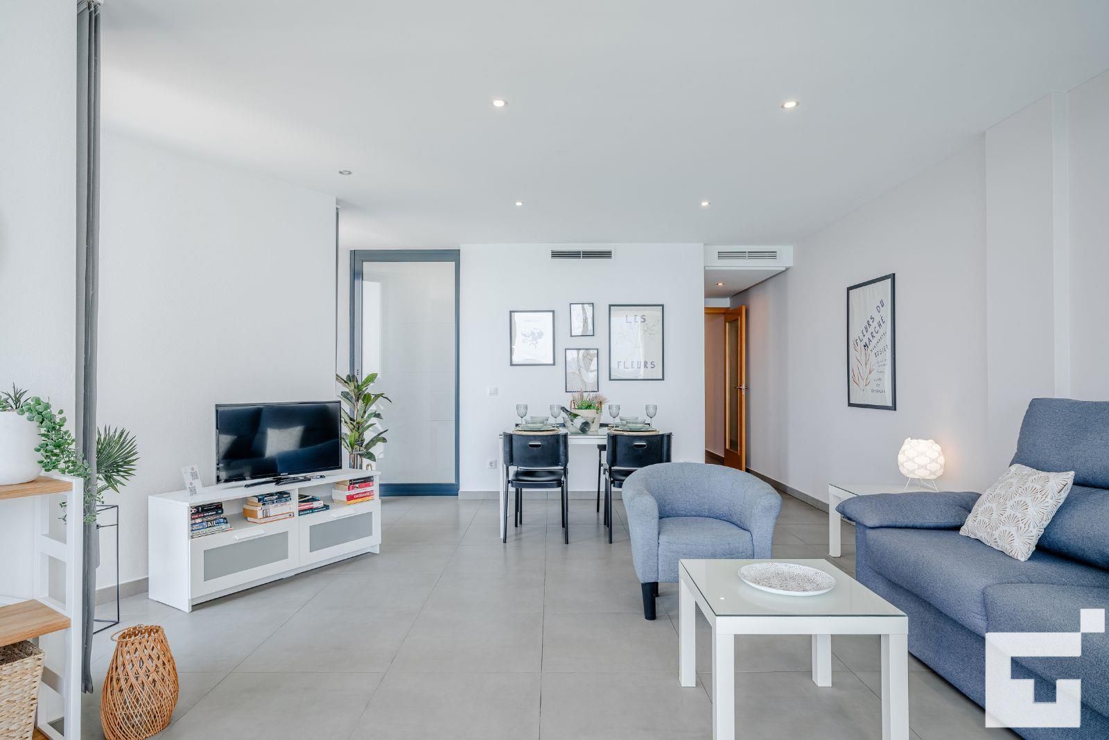 Die Wohnung verfügt über 2 Schlafzimmer und 2 Badezimmer. Die Unterkunft bietet Privatsphäre, wunderbare Ausblicke auf die Bucht, den Strand, das Meer und den Pool sowie schöne Ausblicke auf die Berge. Ihr Komfort und die Nähe zum Strand, den Einkaufsbereichen und dem Nachtleben machen diese Wohnung zu einer idealen Unterkunft für Ihren Urlaub in Spanien mit Familie oder Freunden.