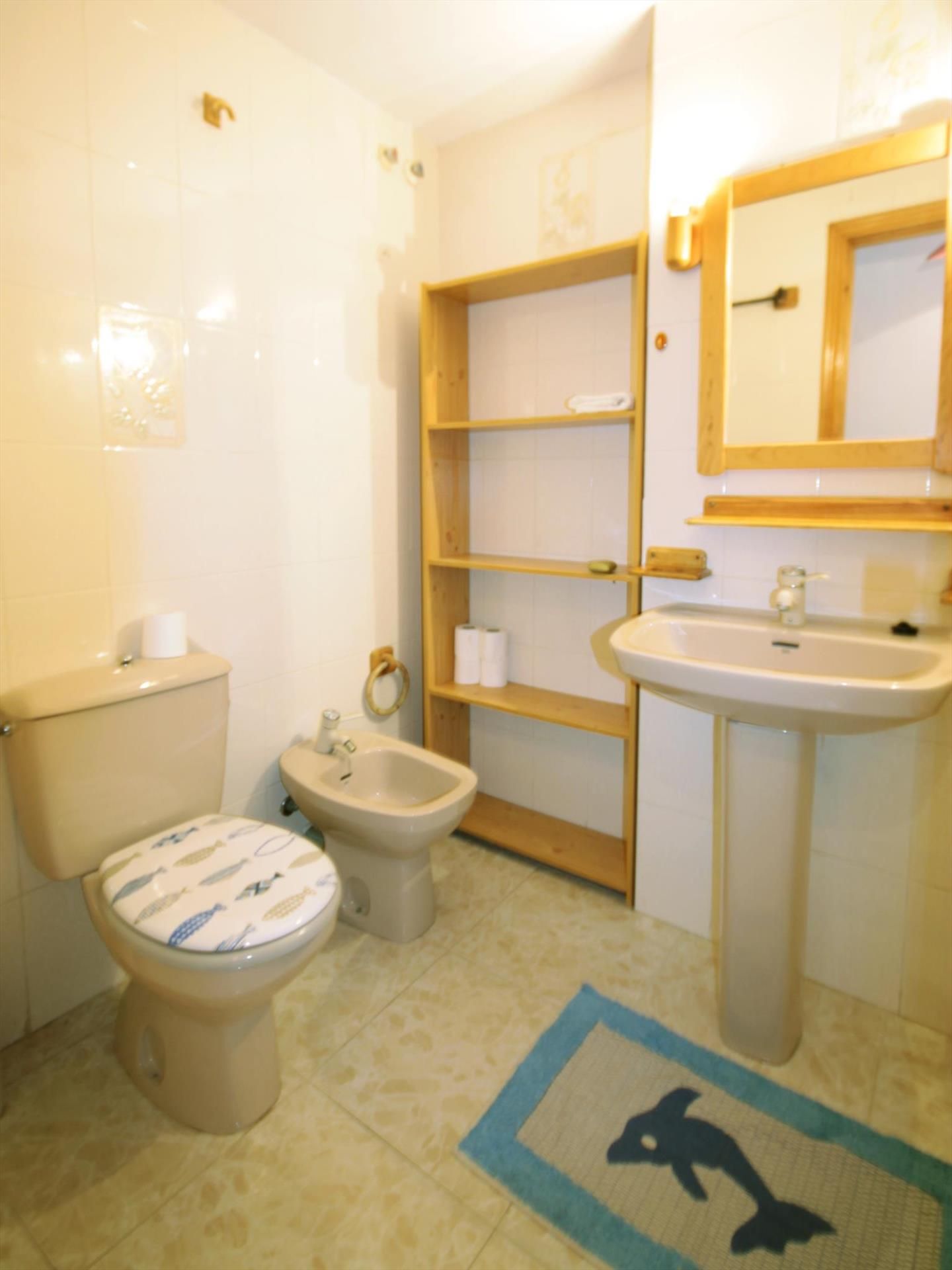 • Eigenes Badezimmer mit Einzelwaschbecken, Bade-/Duschkombination, Bidet und Toilette
