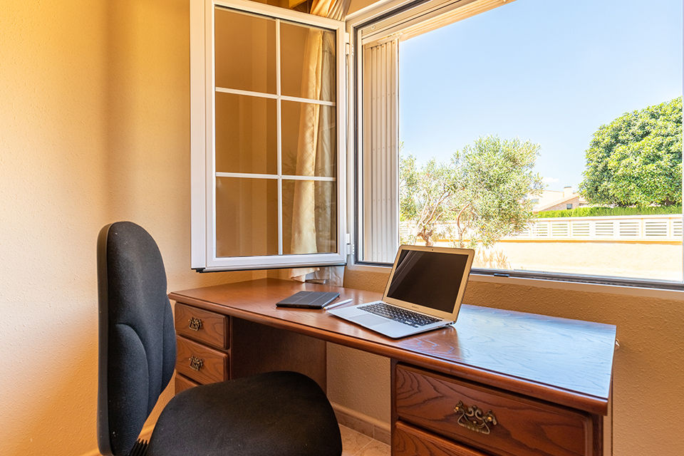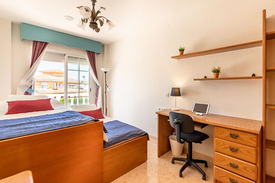 The holiday home has 5 bedrooms and 3 bathrooms, spread over 2 levels. The accommodation offers privacy, a garden with gravel and trees, a beautiful pool and a view of the mountains. The vicinity of the beach, places to shop, sports activities, entertainment facilities and places to go out makes this a fine holiday home to spend your holidays in Spain with family or friends.
