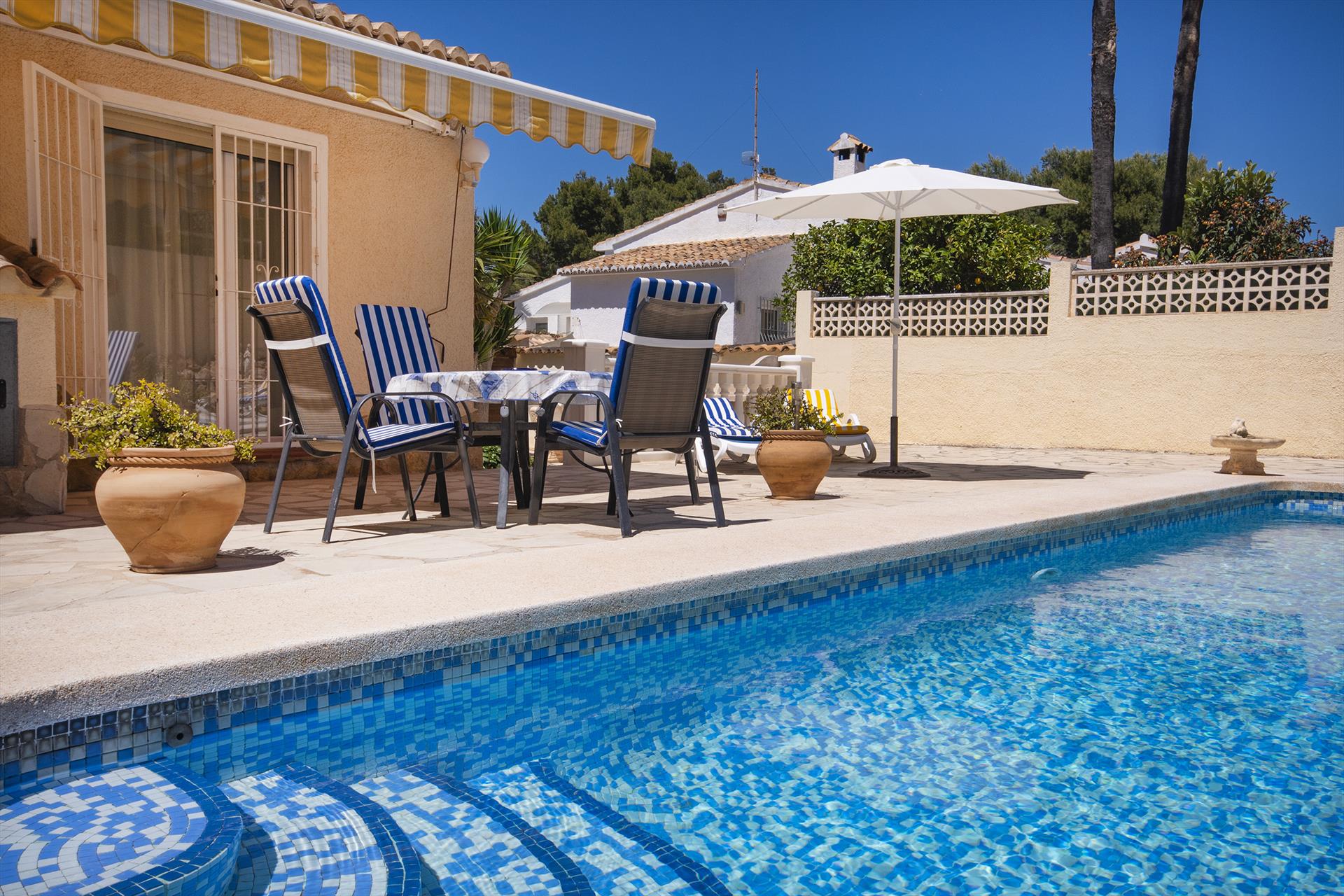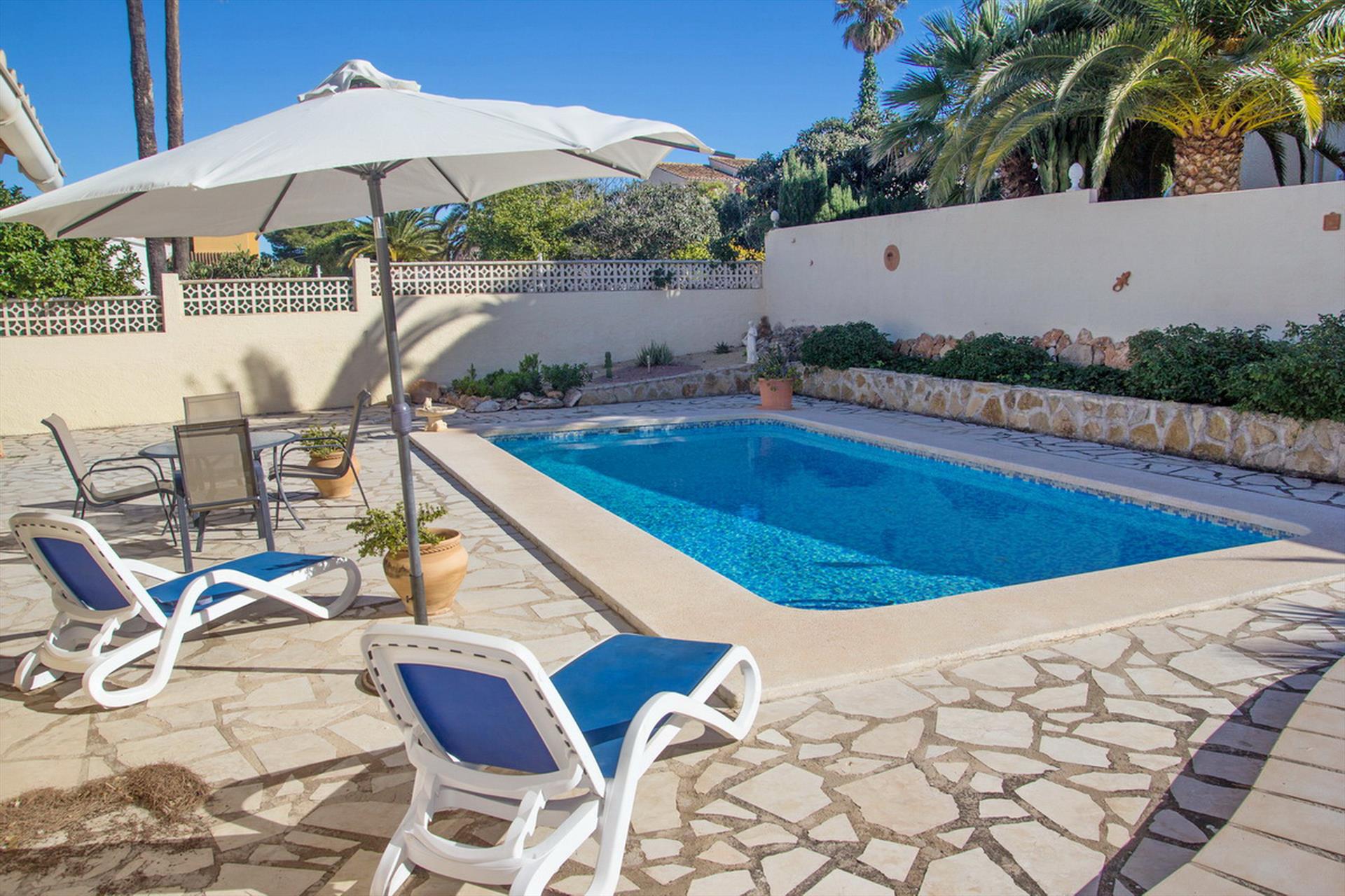 Wonderful and comfortable villa in Benissa, Costa Blanca, Spain with private pool for 4 persons. The house is situated in a residential beach area, 3 km from La Fustera beach and 5 km from Calpe.