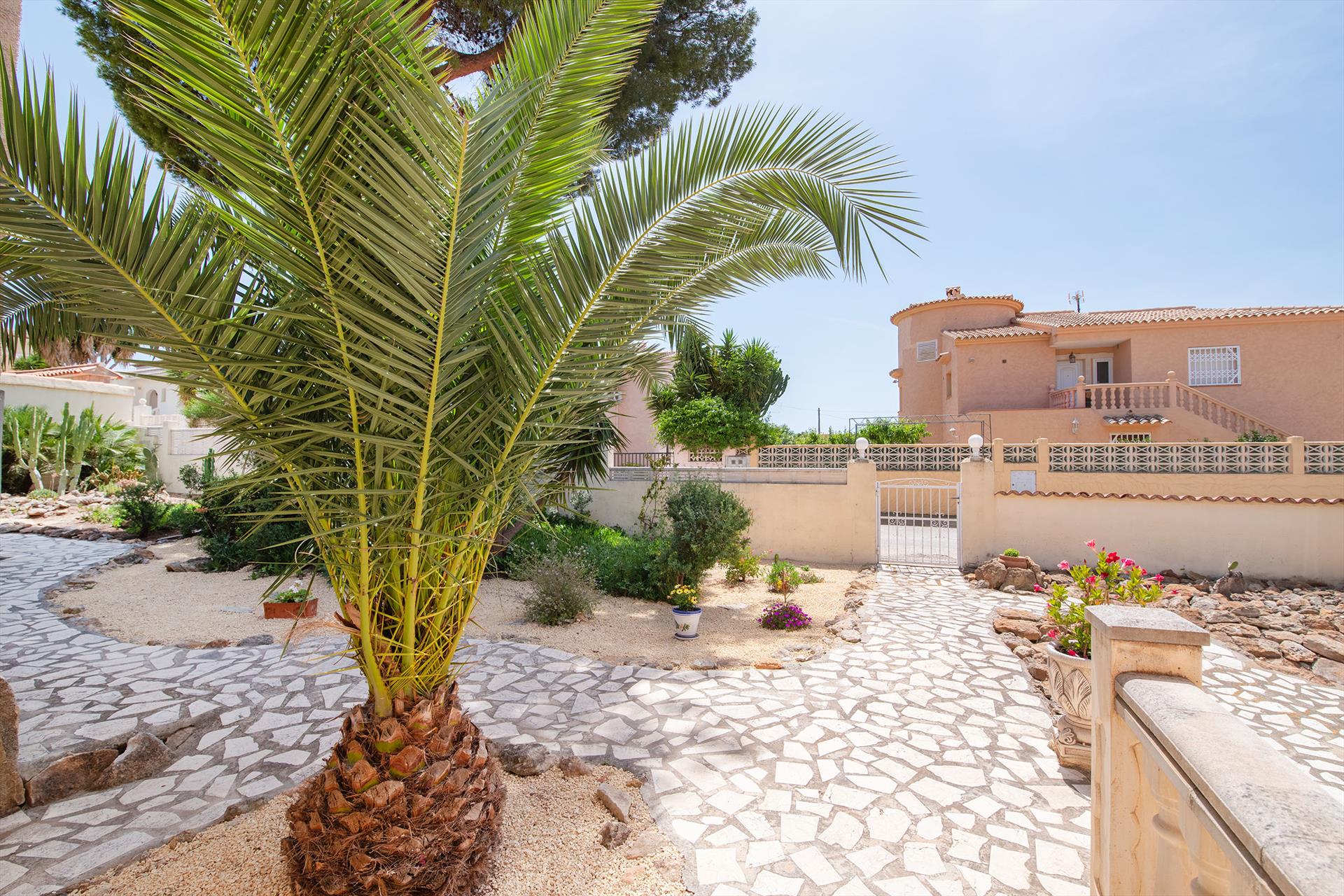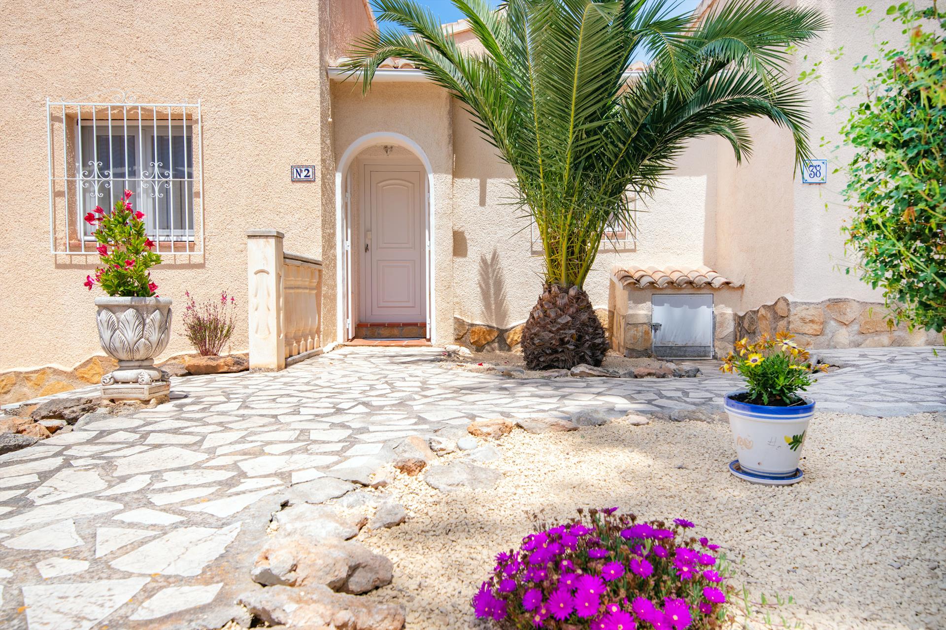 The house has 2 bedrooms and 2 bathrooms. The accommodation offers a garden with gravel and trees and a beautiful pool. The proximity to the beach, places to shop, sports activities, entertainment venues, sights and culture makes this a fine villa to spend your holidays in Spain with family, friends, and even your pets.