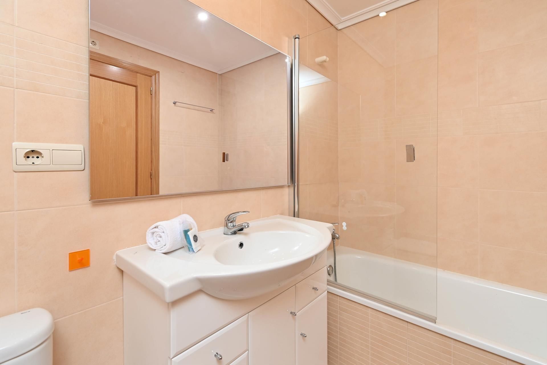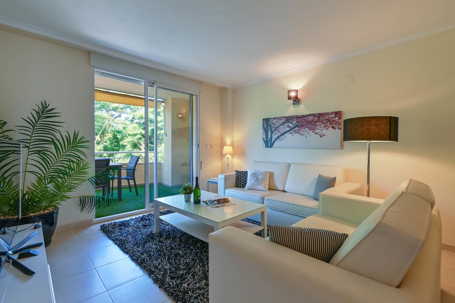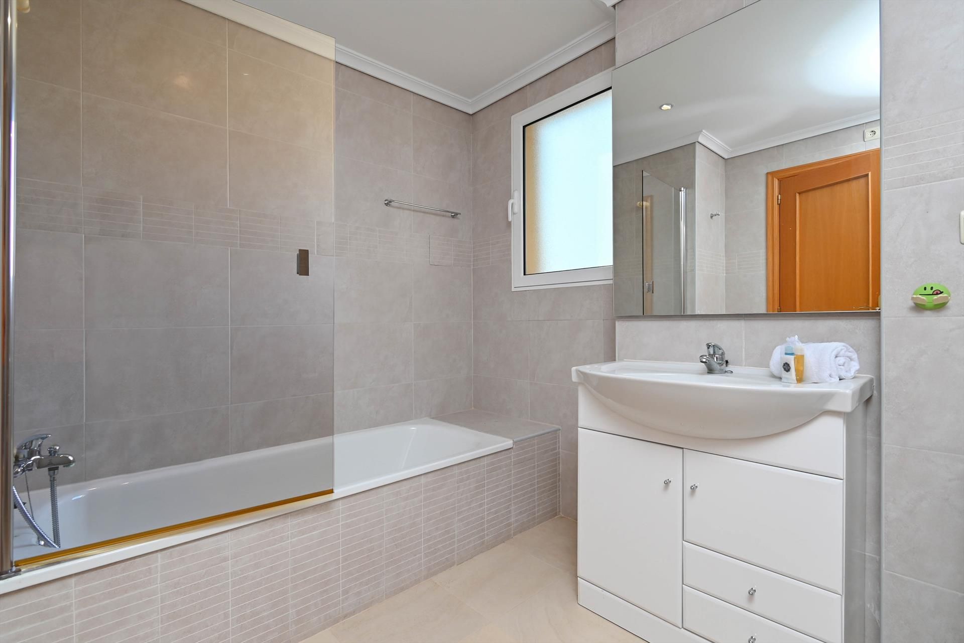 The apartment has 3 bedrooms and 3 bathrooms, spread over 2 levels. The accommodation offers a lawned communal garden with trees. Its comfort and the vicinity of the beach, places to shop, sports activities, entertainment facilities, places to go out, sights and culture make this a fine apartment to spend your holidays in Spain with family or friends.