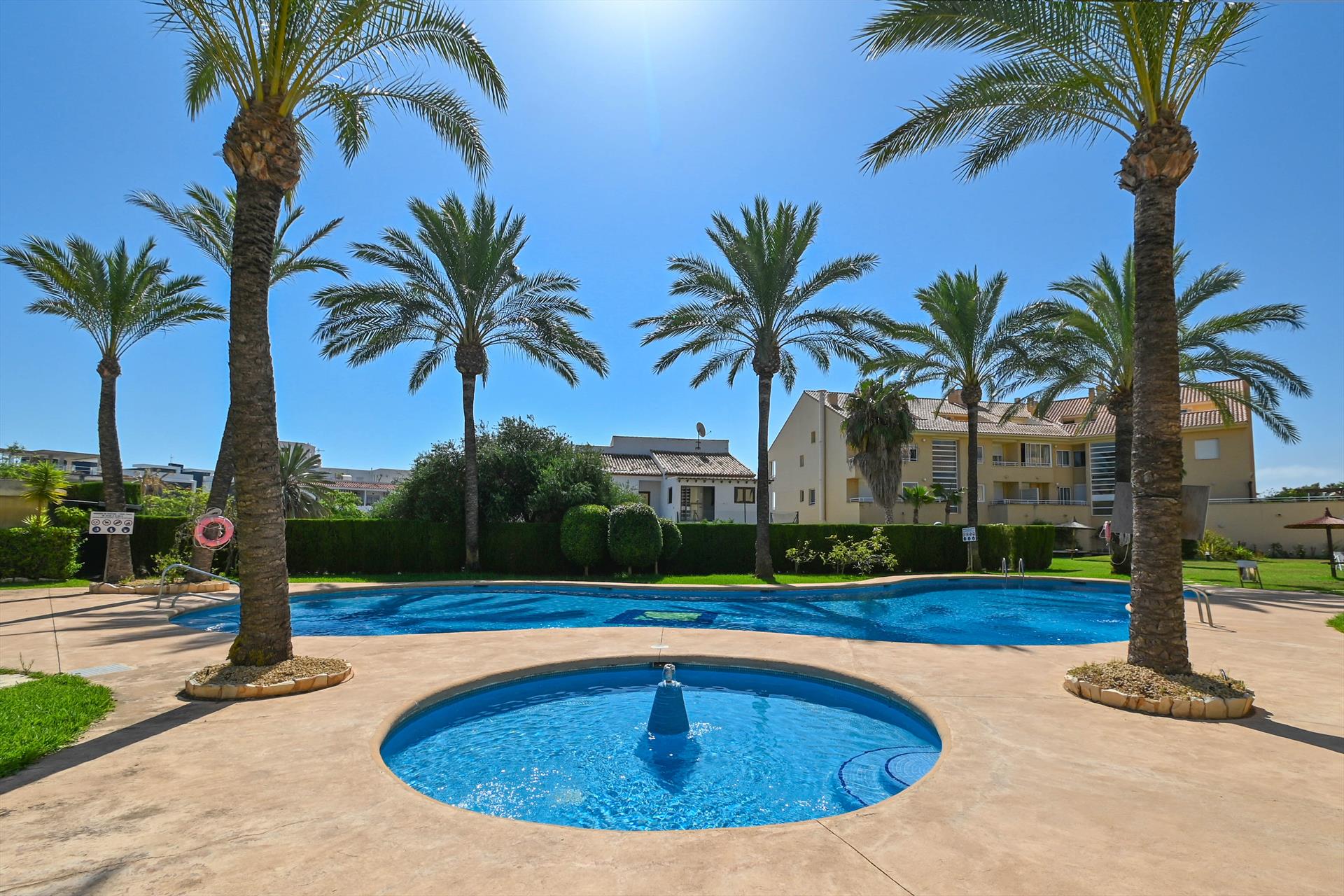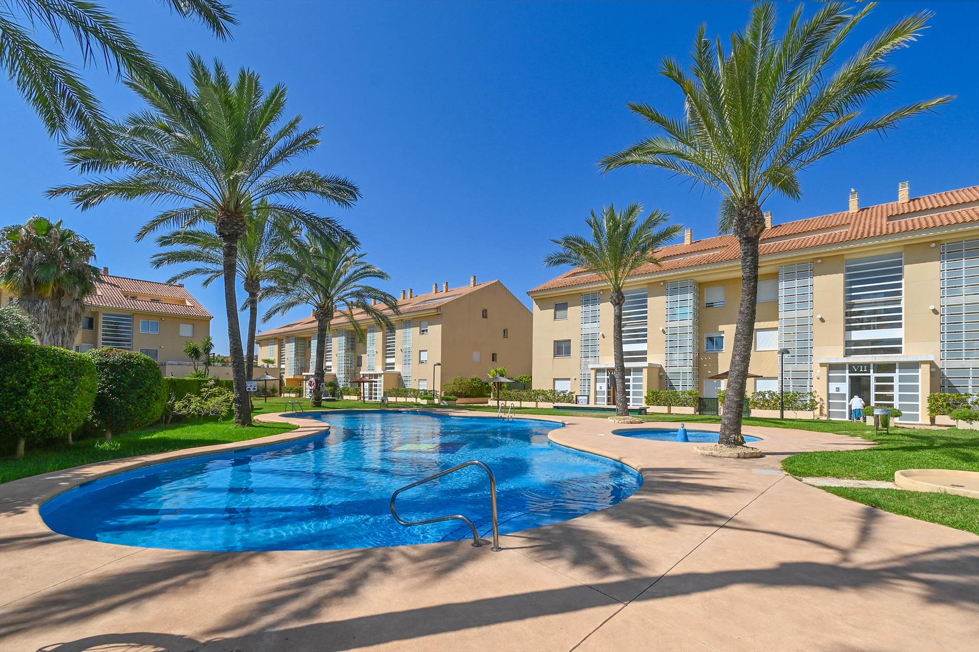 Wonderful and comfortable apartment with communal pool in Jávea, Costa Blanca, Spain for 6 people. The apartment is situated in a residential beach area, close to restaurants and bars, shops, supermarkets and a tennis court, at 1 km from El Arenal, Jávea beach and at 1 km from Mediterráneo, Jávea.