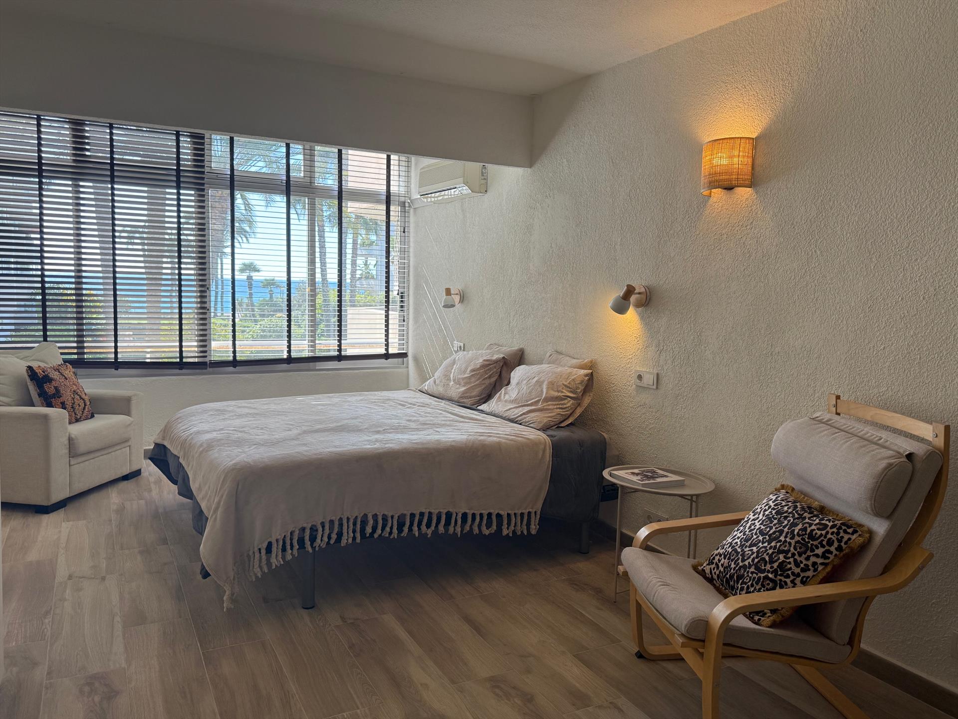 L'appartement dispose de 2 chambres, 2 salles de bains et 1 toilette pour les invités. Le logement offre de l'intimité, un magnifique jardin paysager avec des arbres, un jardin communal gazonné avec des arbres et de superbes vues sur la mer, la piscine et le jardin.