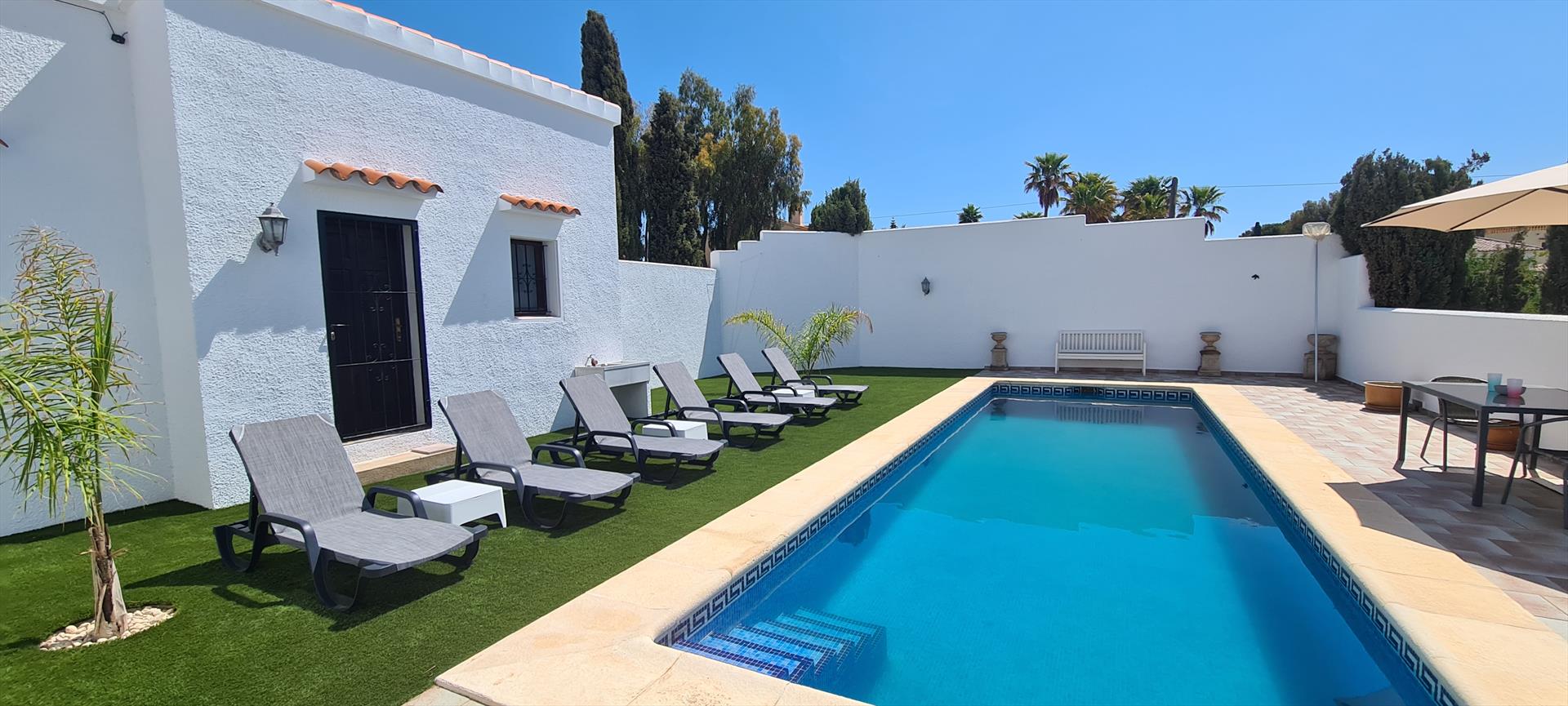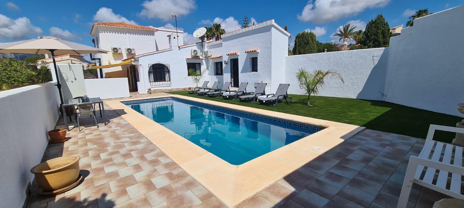 Magnifique et confortable villa à Calpe, Costa Blanca, Espagne, avec piscine privée pour 6 personnes. La maison est située dans un secteur côtier et résidentiel, à 2 km de la plage de La Fustera.