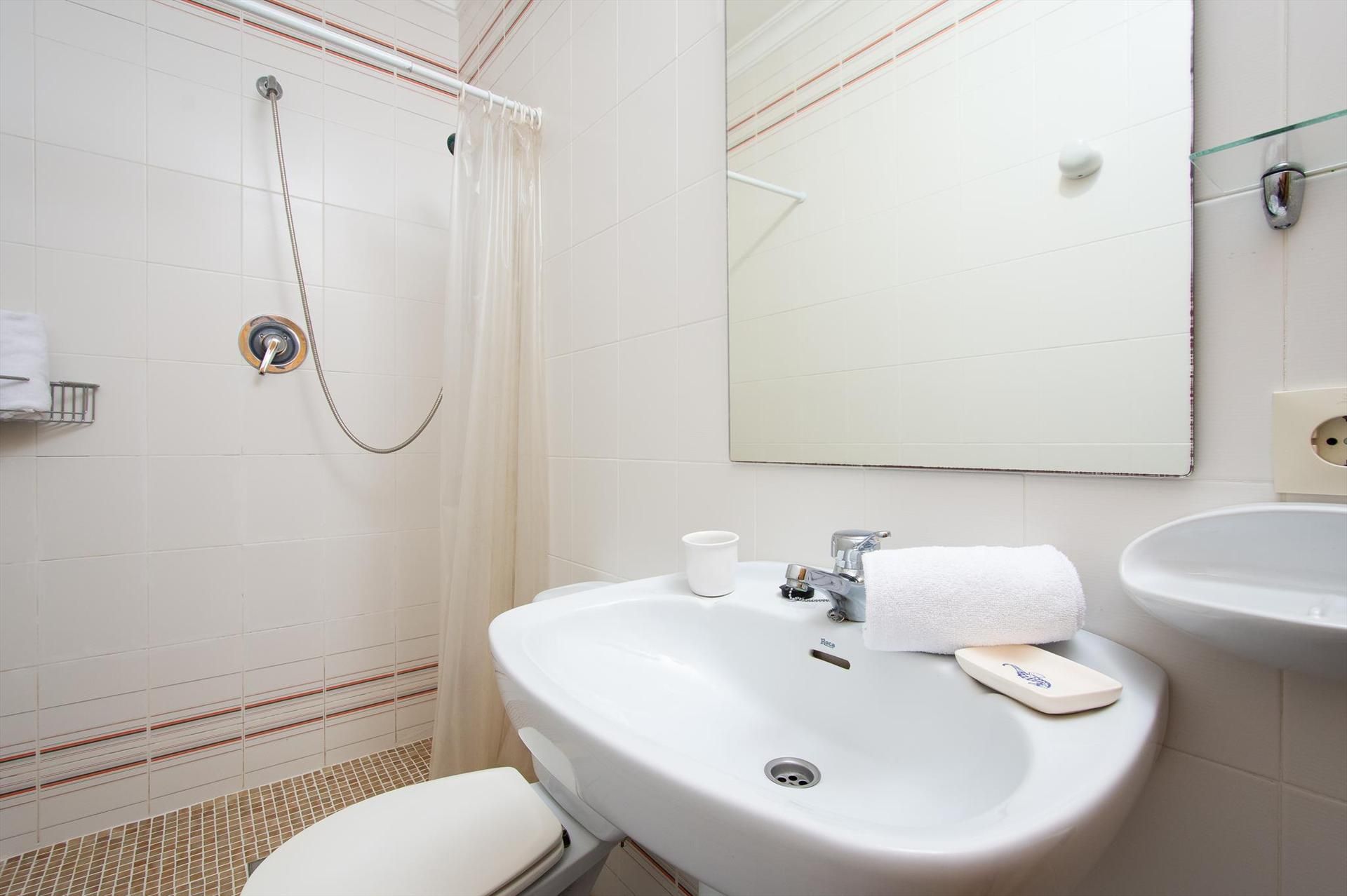 • badkamer met enkele wastafel, douche en toilet